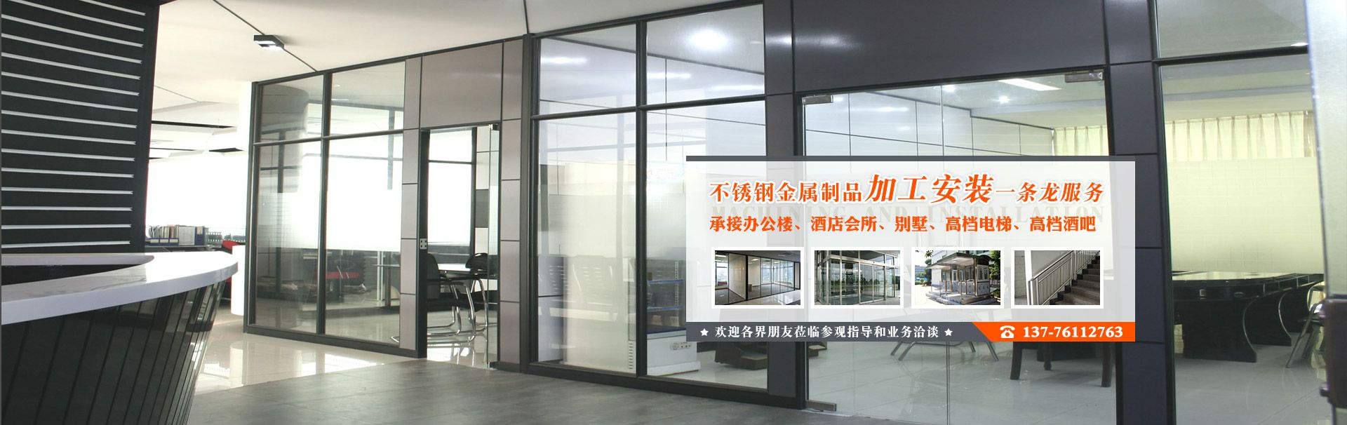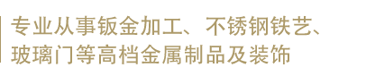 公司专业承接办公楼、酒店会所、别墅、高档电梯、高档酒吧等不锈钢金属制品、加工安装一条龙服务、欢迎各界朋友莅临参观指导和业务洽谈。